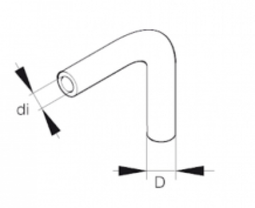Met dit rubberen verloopstuk haaks  kunt u een verbinding maken tussen de doseerpomp en de nylon (Mecanyl) brandstofleiding. Dit verloopstuk zit op de kachel invoer en de perskant van de doseerpomp.