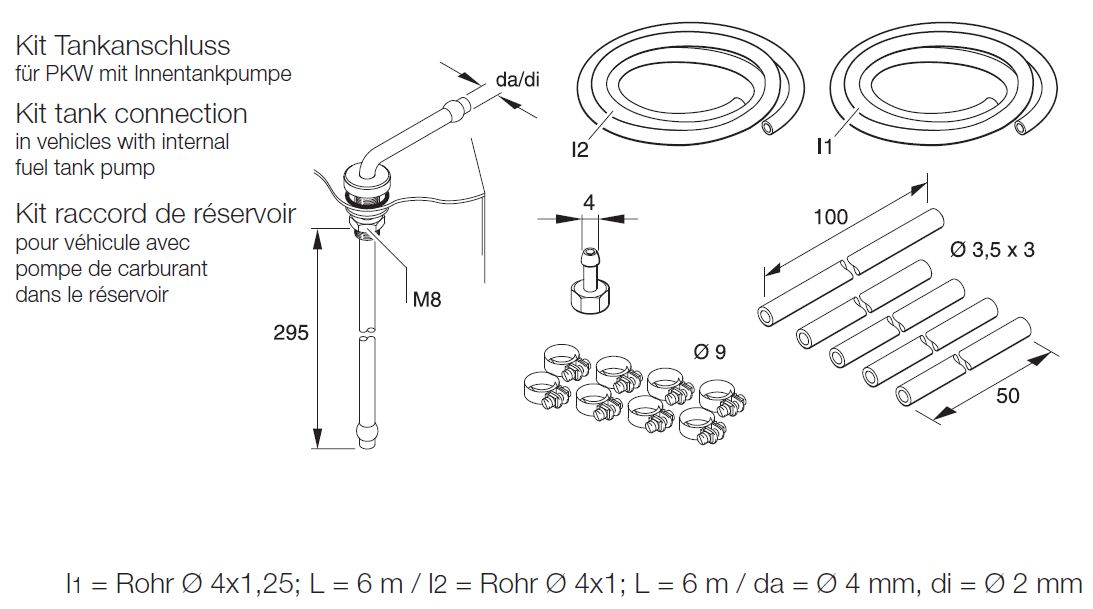 Eberspächer Tank connect set for cars. Ø 2 mm. Length 295 mm does not have any reviews yet. Share your experiences and post a review.