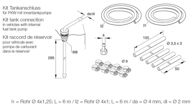 Tankaansluitingset  2 mm voor personenauto's lengte 295  mm