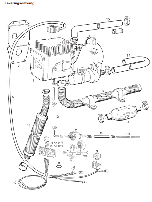 Met deze universele inbouwset kunt u de Hydronic M II waterkachel inbouwen. Set bestaat uit, uitlaatslang 1,2 mtr , demper, klemmen , kabelboom, brandstofvoorziening en divers montagematriaal.In de set zit  GEEN  bediendingselement.