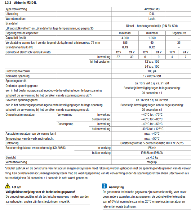 Mogelijke toepassingen : Personenwagens, bestelbusjes, transporters, campers, 4- wiel voertuigen, electrovoertuigen, invalidenvoertuigen, Op grond van het concept voor mobiele toepassing zijn de verwarmingen als continu verwarming (bijv. voor een verwarming van woningen en/of woonboten) niet geschikt.