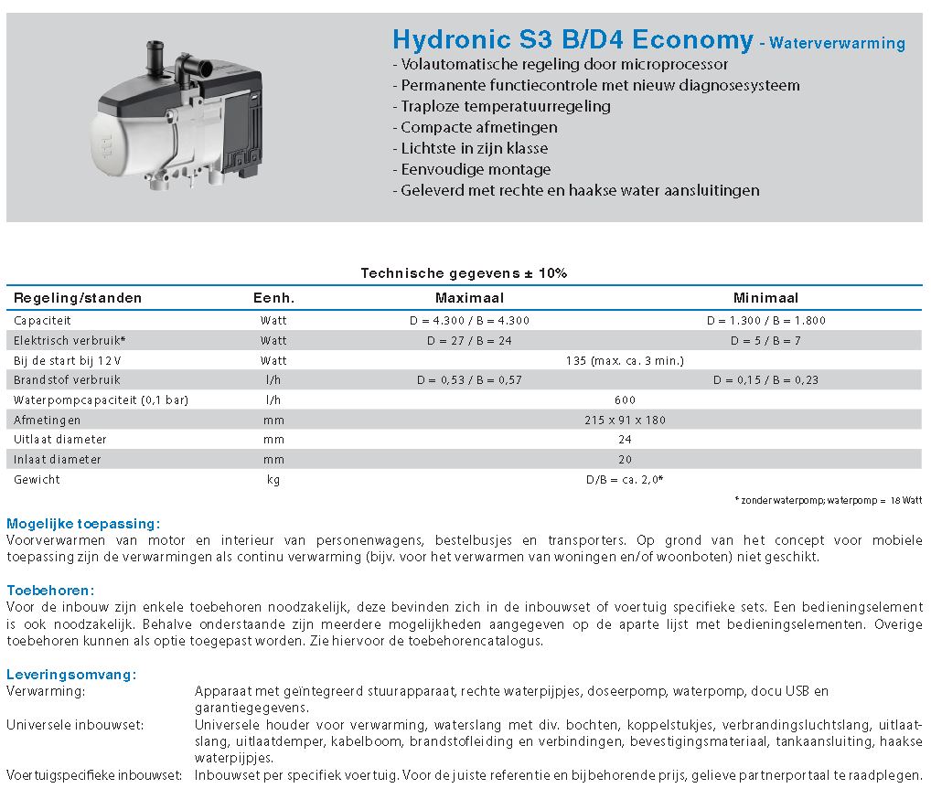 Eberspächer Hydronic S3 Economy CS waterkachel D 4. 12 Volt .4 kW heeft nog geen reviews. Deel uw product ervaring en plaats een review.