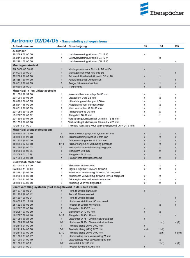 Eberspächer Airtronic D 6 Scheepsset, excl. luchttoebehoren. 24 Volt heeft nog geen reviews. Deel uw product ervaring en plaats een review.