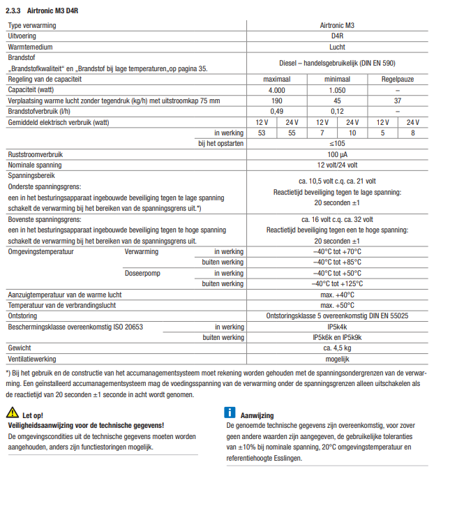 Mogelijke toepassingen : Personenwagens, bestelbusjes, transporters, campers, 4- wiel voertuigen, electrovoertuigen, invalidenvoertuigen, Op grond van het concept voor mobiele toepassing zijn de verwarmingen als continu verwarming (bijv. voor een verwarming van woningen en/of woonboten) niet geschikt.