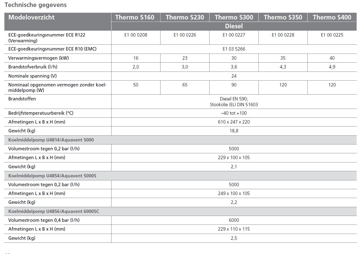 Alternate products for Webasto Spheros Thermo S 230 Water heater. 24 Volt.