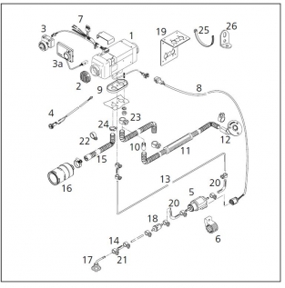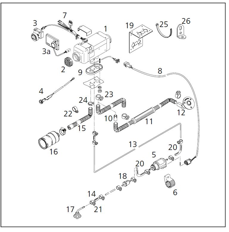 AT2000ST Scheepsset : verwarmingsapparaat,compleet met standaard bedieningspaneel,electronische temperatuurregeling,brandstofpomp,brandstofslang,gasdichte uitlaatdemper+uitlaatslang,rvs montagesteun, kabelboom , montagedelen RVS ,paneel met schakelaar, huiddoorvoer en tankaansluiting .