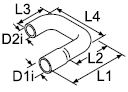 Alternate products for Webasto Molded hose D1i Ø 20 mm, D2i Ø 15 mm. Length 1 = 55 mm, L 2 = 20 mm, L 3 = 55 mm, L 4 = 65 mm. 180°