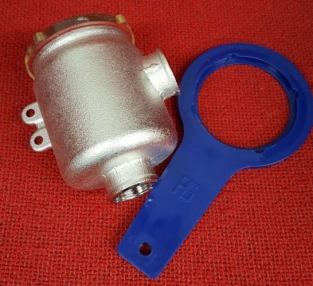 Webasto Zeewaterfilter 3/4". Model 1160. Hoogte 105 mm. Vernikkeld messing