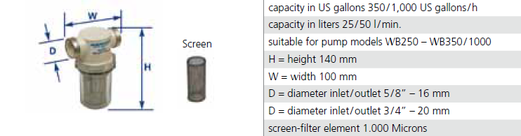 Zeewaterfilter 5/8" voor BlueCool chiller inclusief zeef. Extra zeef WBCL001154